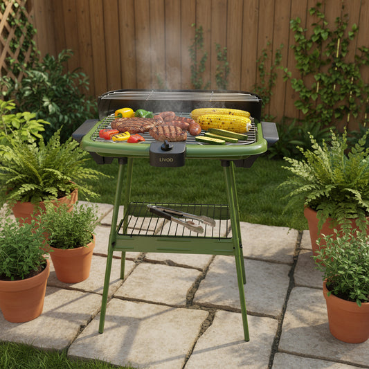 LIVOO BARBECUE ELECTRIQUE SUR PIEDS OU TABLE 2000W VERT KAKI