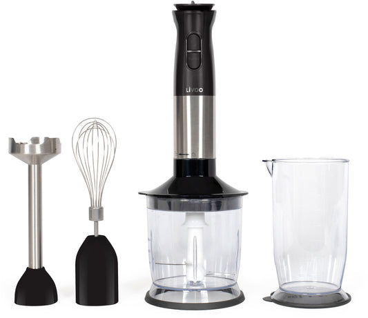 LIVOO MIXEUR PLONGEANT 400W 2LAME ACIER INOX + BOL GRADUE BLANC