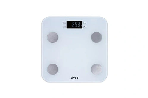 - Plateau en verre trempé avec un affichage LCD clair, 13 mémoires utilisateurs, et 4 capteurs de haute précision pour des mesures fiables