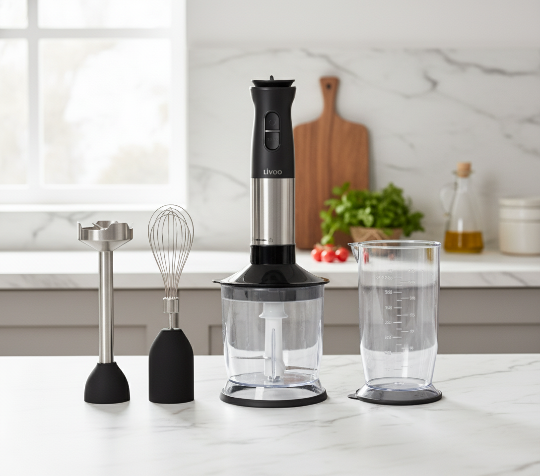 Réalisez différentes recettes de cuisine à l'aide du set mixeur plongeant, DOP246, de Domo.
