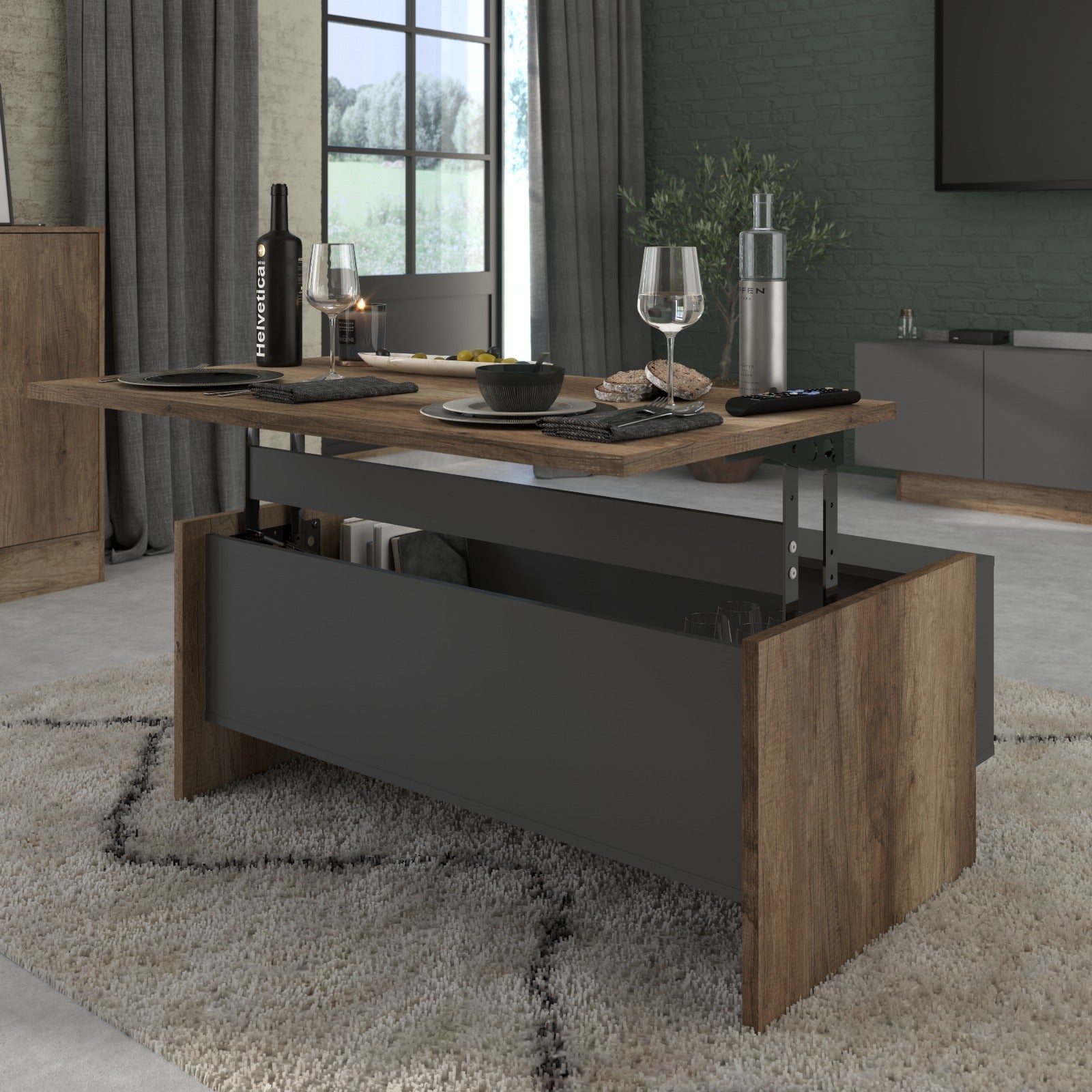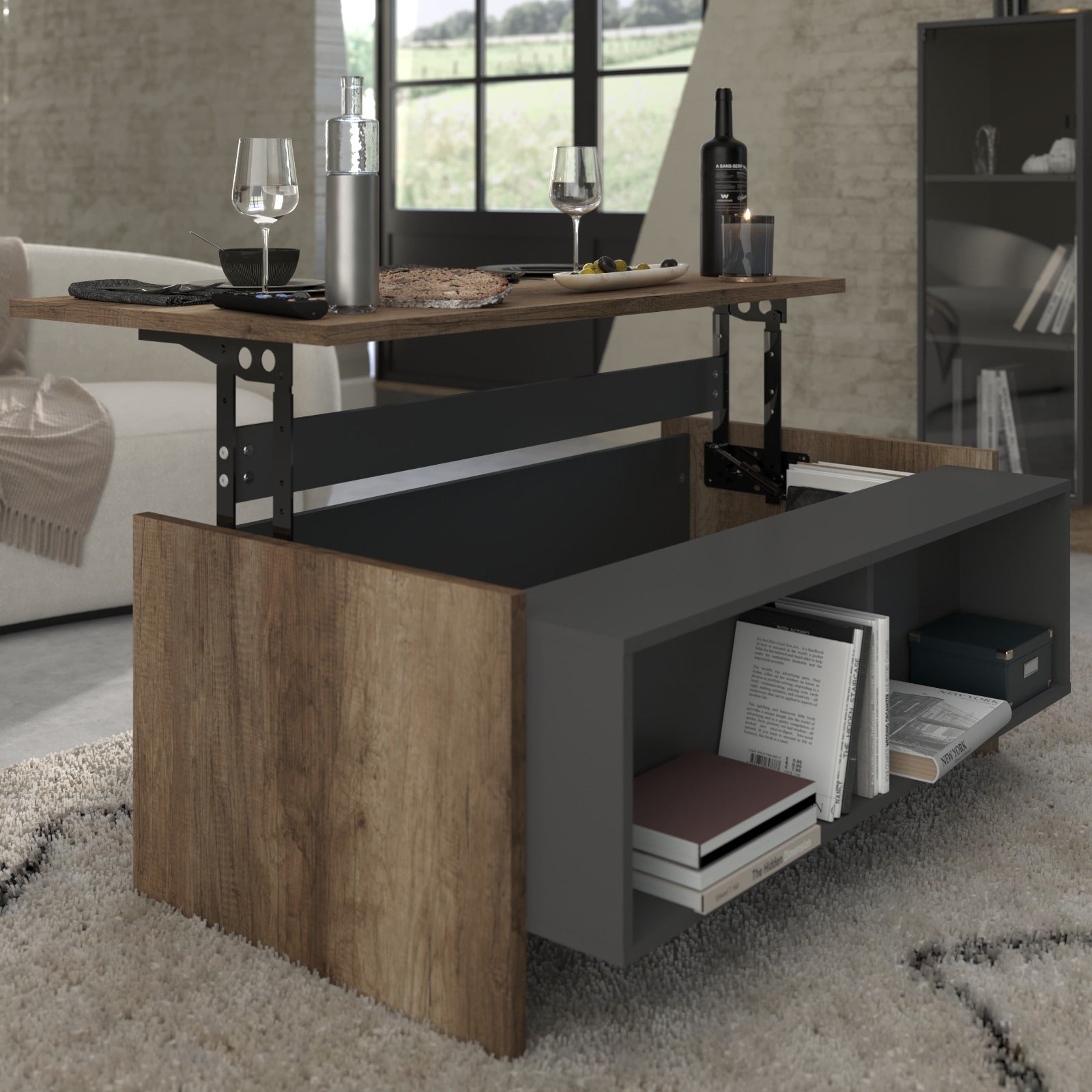 La table basse relevable PARADOXE Gris / imitation chêneallie style moderne et fonctionnalité.